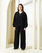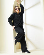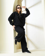 Black Quarter-Zip Sweatshirt & Wide-Leg Coord Set