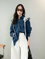 Crafted from premium, structured dark-wash denim for a rich color and durable feel, complemented by a lace fabric on the collar for a striking contrast and comfortable wear.